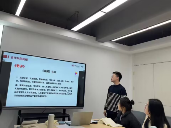 本次读书分享会分为三个环节。一是对邓小平同志个人生平进行了简短介绍,二是组织分享会成员共同讨论邓小平同志“三落三起”的曲折经历、中国古代仁人志士关于“共同富裕”的相关表述与思想,三是总结讨论成果,以《邓小平文选》为切入点,继续深入学习探讨马列经典文本中的共同富裕思想。