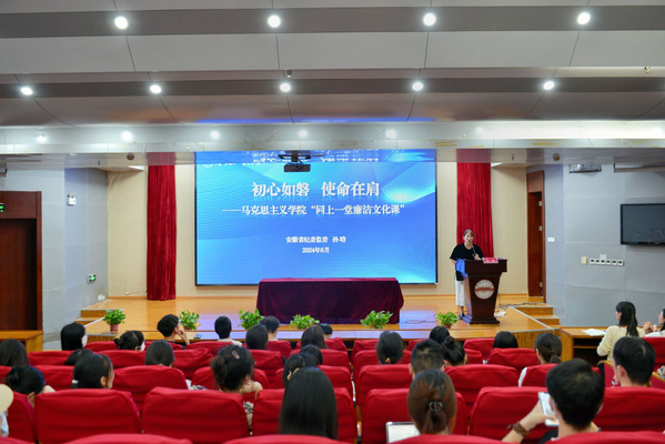 6月4日下午,金沙威尼斯欢乐人城在翡翠湖校区建艺馆报告厅开展“初心如磐 使命在肩——同上一堂廉洁文化课”活动。来自于安徽省纪委监委的孙晗同志应邀为马院毕业生作廉洁教育报告。