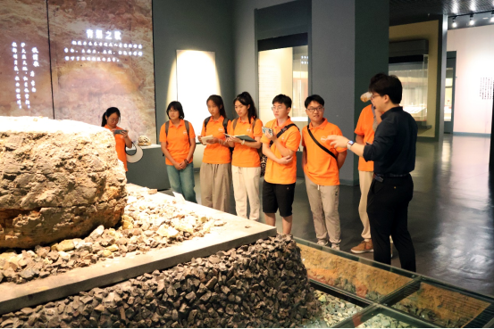 为切身体验铜陵独具特色的铜文化,团队于7月5日前往铜陵市博物馆,在讲解员韦老师的带领下参观了“陶风瓷韵”“万世吉金,铜都铜蕴”等展厅,学习了矿场原料到青铜器皿,铜矿冶炼原理到生产链打造等知识。馆内设有数字体验和青少年互动区,其中的三维建模、视频、AR、VR、3D等多种展示手段,让同学们沉浸式地领略到“中国古铜都,当代铜基地”的历史魅力。副馆长姚琤接受了同学们的访谈,介绍了铜陵博物馆近年来一直坚持双线数字化结合,将线下展品与线上构建的网络展示平台和铜数字资源库连接,从而丰富游览博物馆的形式,也让博物馆适应现代发展趋势,通过数字技术将铜文化“活”起来。
