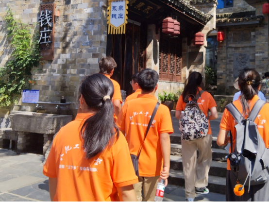 7月7日至8日,团队到达永泉小镇,在讲解员带领下体验铜钱购物、参观忆江南十二景。永泉小镇位于秀美、富庶的八百里皖江之滨,中国古铜都——铜陵东部的叶山林场,其创始人杨树根先生利用叶山风景区,秉持着“游江南山水,看江南园林,吃江南味道,住江南人家”的文化理念,建造出一个石板院落、山水相间、天井木雕并存的旅游度假胜地,让游客仿佛置身于古代的世外桃源、人间仙境,沉浸式体验古色古香的江南风光。