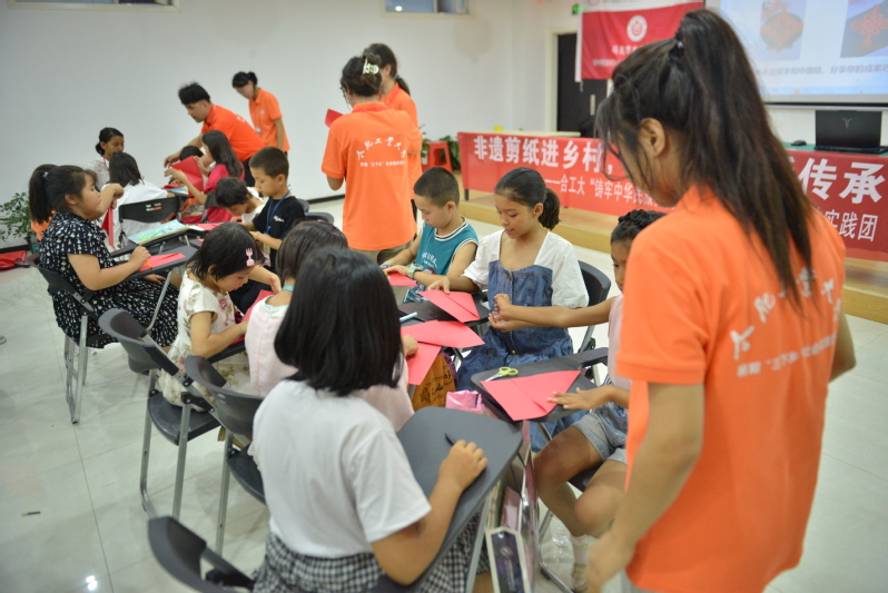 7月19日上午,团队成员赴新疆库车市社区和村镇开展剪纸教学活动。活动现场由团队成员介绍非遗剪纸文化的历史根源和文化内涵,讲述非遗文化传承形式,带着现场同学们展示并介绍非物质文化遗产作品。在研学实践环节,团队成员结合中国特色文化剪纸技术,选择演示中国结的步骤。经过团队成员指导帮助,参与活动的学生剪出各具特色的中国结。最后邀请参与的同学展示剪纸成果并评选奖项,进一步激发各族学生学习中华民族优秀传统文化的热情。
