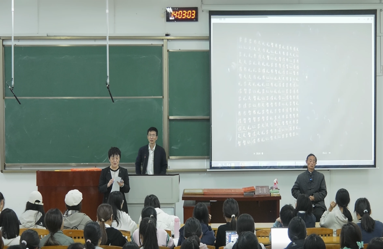 报告结束之际,潘莉教授对李江民大师的精彩报告表示感谢,指出李江民大师为同学们展示了历朝历代的代表性雕版印刷作品,引领同学们走向历史深处,感受到中华优秀传统文化的博大精深,带领同学们现场体验雕版印刷的工艺流程,沉浸式地感受到中华优秀传统文化的神奇魅力,享受到一堂精神盛宴,感受到大师级人物把文化与技术完美结合的匠心独具和精益求精的工匠精神,也希望同学们坚定文化自信,不断在技术与文艺的结合中推进中华优秀传统文化的创造性转化、创新性发展。